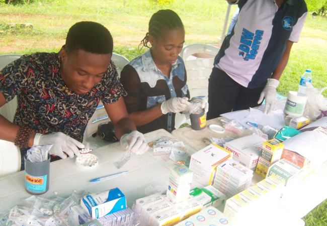 The scope of the annual medical outreach is an outpatient type of primary health care service during which patients gather along a care line where data capture, medical consultation and examinations are carried out. This is followed up with spiritual counseling, drugs administration and, if required, referral to a secondary health centre. Finally, a welfare stops where food items, clothing, shoes and other sundry household items are given out free of charge without discrimination or prejudice. Blood pressure and blood sugar monitoring were also done. Malaria parasite, HIV tests, Dental and optometric consultations were also conducted. Free eyeglasses were given out.